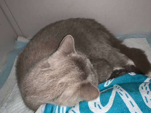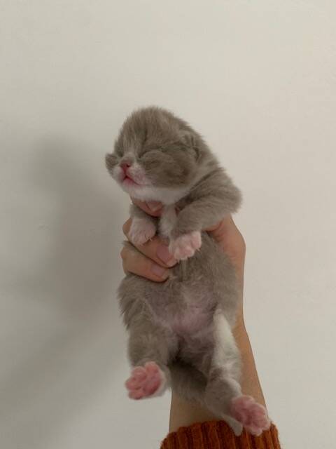 Na een paar lange dagen waarbij de bevalling maar niet wilde doorzetten is Chanel gisteren op dag 68 dmv een keizersnede moeder geworden van 2 poesjes. Het is een wonder dat het blauwe poesje nog leefde zij lag nog voor het geboortekanaal (dus niet in het geboortekanaal) maar haar vruchtblaas was al gesprongen. Zodra dit gebeurd moeten ze adem gaan halen maar in dit geval zat ze nog in de buik van de moeder. Zelfs haar vachtje begon al in de buik op te drogen. We hebben ontzettend geluk gehad dat zij er levend uit kwam. Zelfs de dierenarts was verbaasd hierover. Het tweede poesje is lilac met wit en iets lichter in gewicht maar beide nu al flinke dames