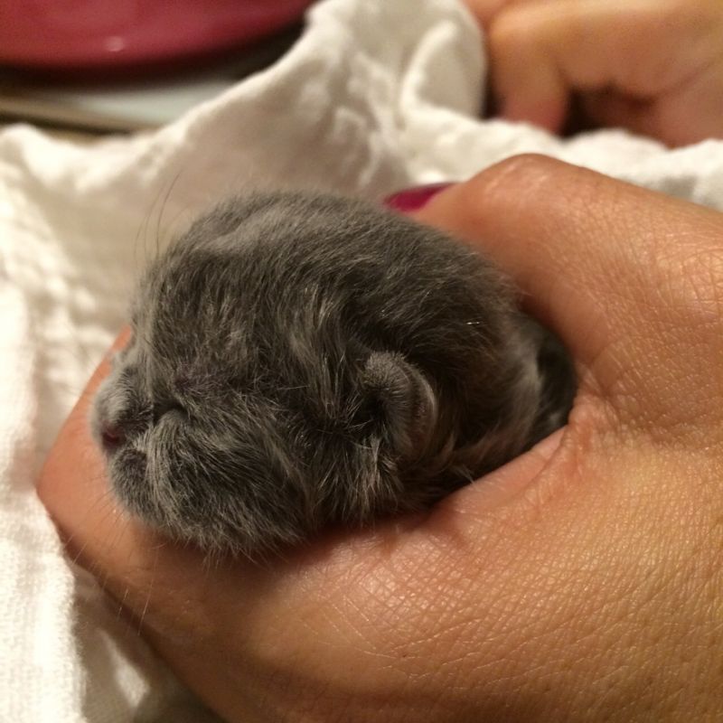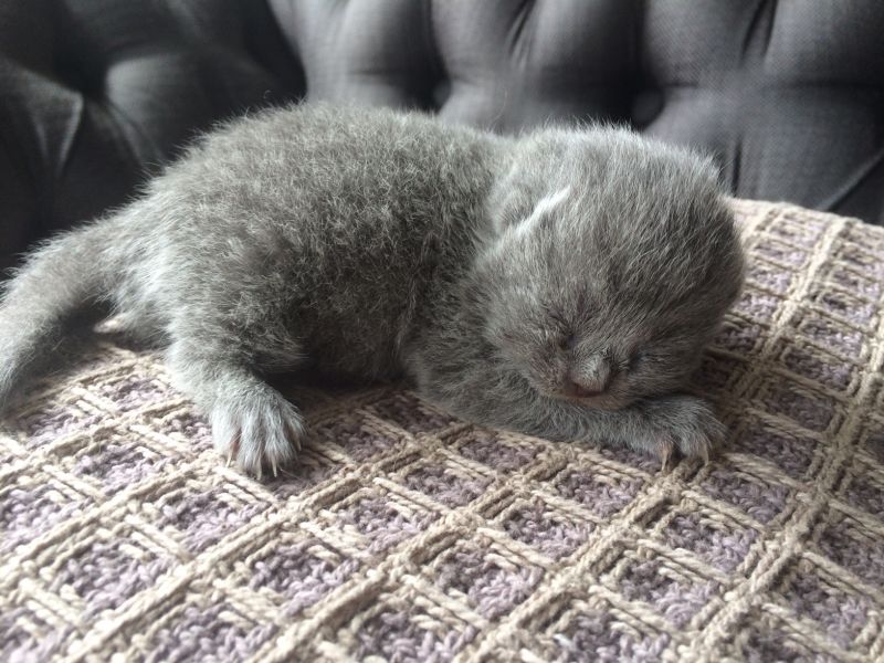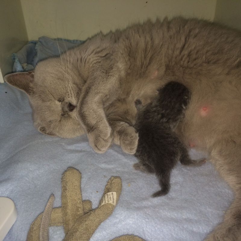 Op 4 mei om 01.10 uur is Mirre bevallen van een prachtig blauw poesje van Mirre en Dorado. Haar gewicht bij de geboorte is 107 gram.
