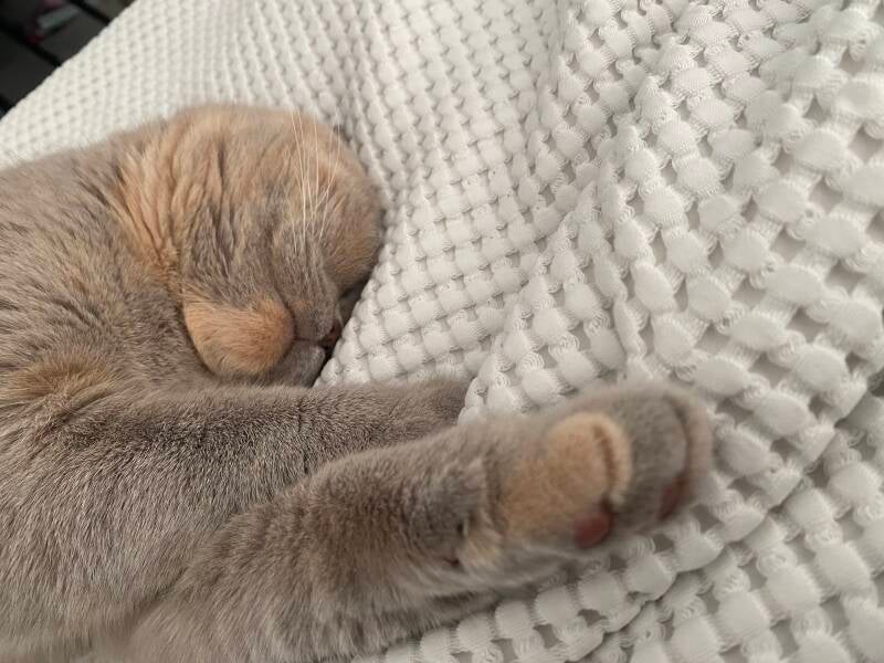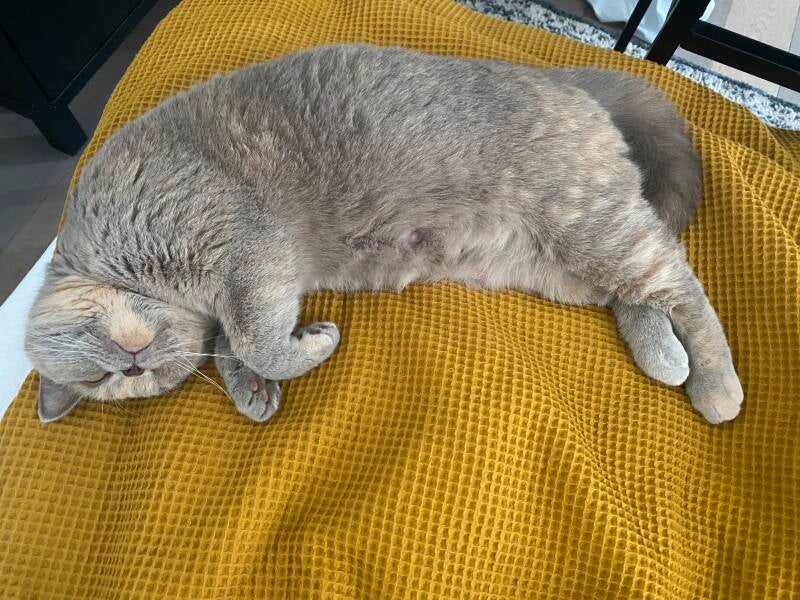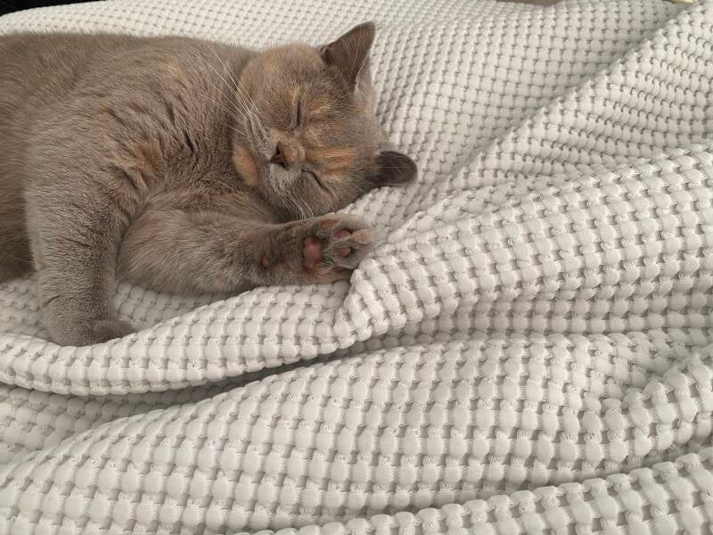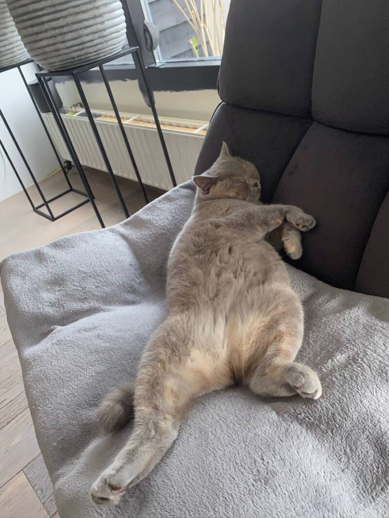 In de nacht slaapt Peach lekker bij ons op bed en geniet daar zichtbaar van. Je ziet nog niet echt dat ze zwanger is, maar is wel al zo'n ruim 450 gram aan gewicht toegenomen. Kan natuurlijk zijn dat ze niet zo'n groot nest krijgt maar vorig jaar heeft ze ons doen verrassen met maar liefst 6 kittens dus het kan nog alle kanten op. We hopen op een nestje van 3 a 4 dat is net mooi. Peach is zelf niet zo'n groot poesje dus met 6 kittens was het best zwaar voor haar.