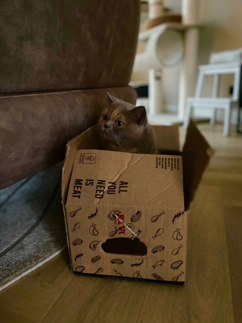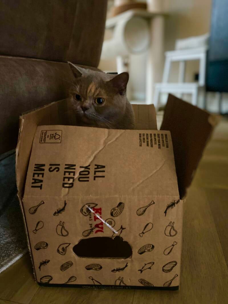 Peach inspecteert de werpkist ze is altijd heel kritisch dus hebben ook nog twee kartonnen dozen staan zodat ze kan kiezen.
