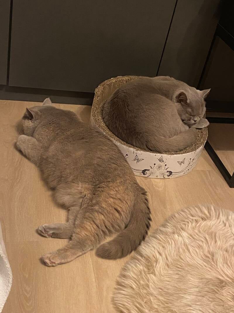 Peach is wat onrustigen, Lola steunt haar moeder en ligt bij haar in een doos. Zo lief ๐ป