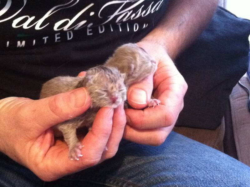 De hand van een fokker is de hand dat de kittens hun vruchtzak breekt als het niet gebroken is na geboorte...
